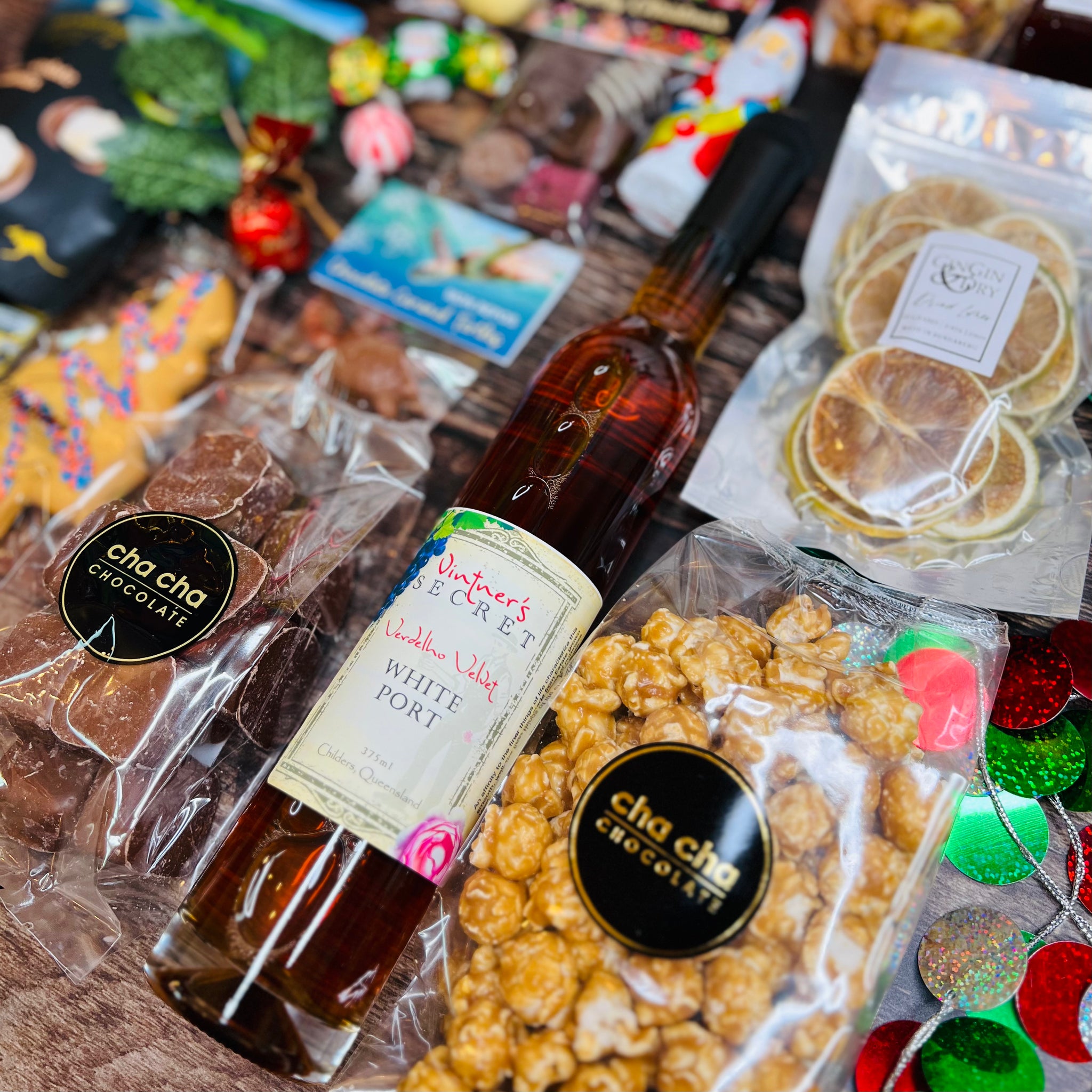 Displayed in a rustic timber crate with gorgeous handmade Christmas tag, cellophane and satin bow.