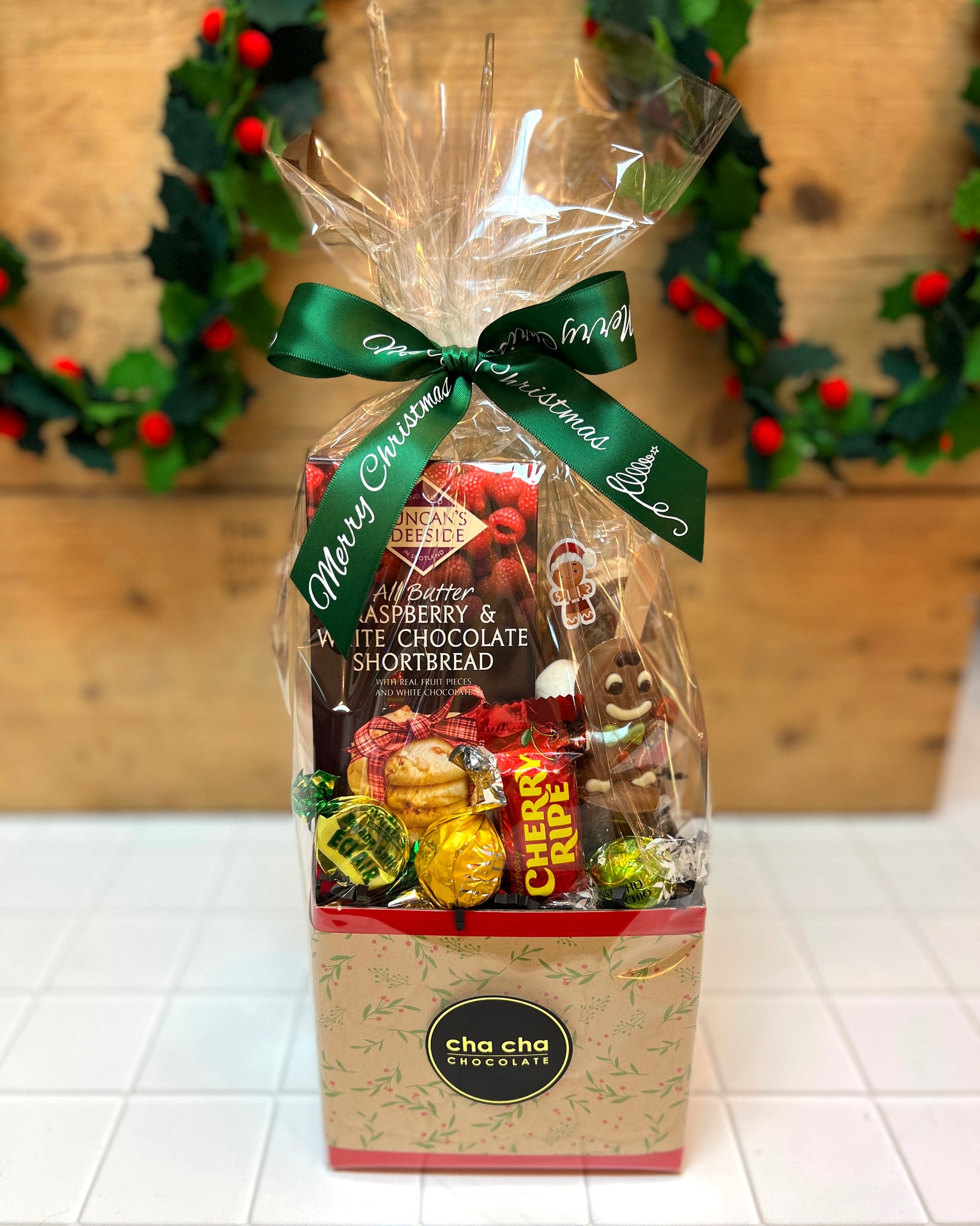 Cha Cha Chocolate products are made on shared equipment with dairy, soy, wheat, gluten, peanuts, tree nuts, and dried fruit. While we take care to avoid cross-contamination, traces may occasionally be present. Please check individual product labels for full ingredients, and feel free to contact us directly to discuss the contents of this hamper: 07 4152 4204.