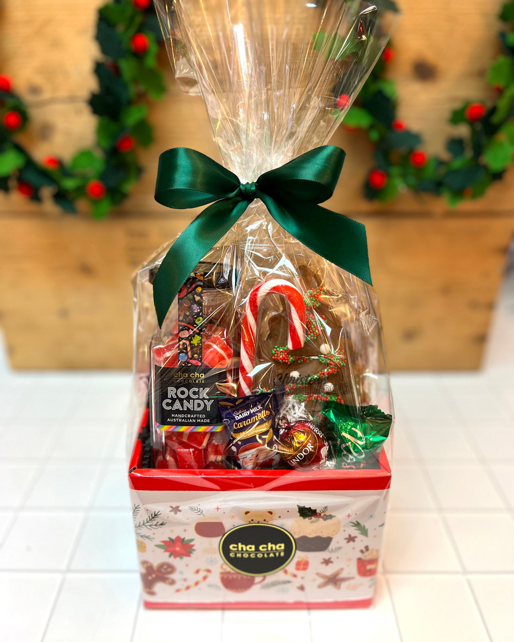 Cha Cha Chocolate products are made on shared equipment with dairy, soy, wheat, gluten, peanuts, tree nuts, and dried fruit. While we take care to avoid cross-contamination, traces may occasionally be present. Please check individual product labels for full ingredients, and feel free to contact us directly to discuss the contents of this hamper: 07 4152 4204.