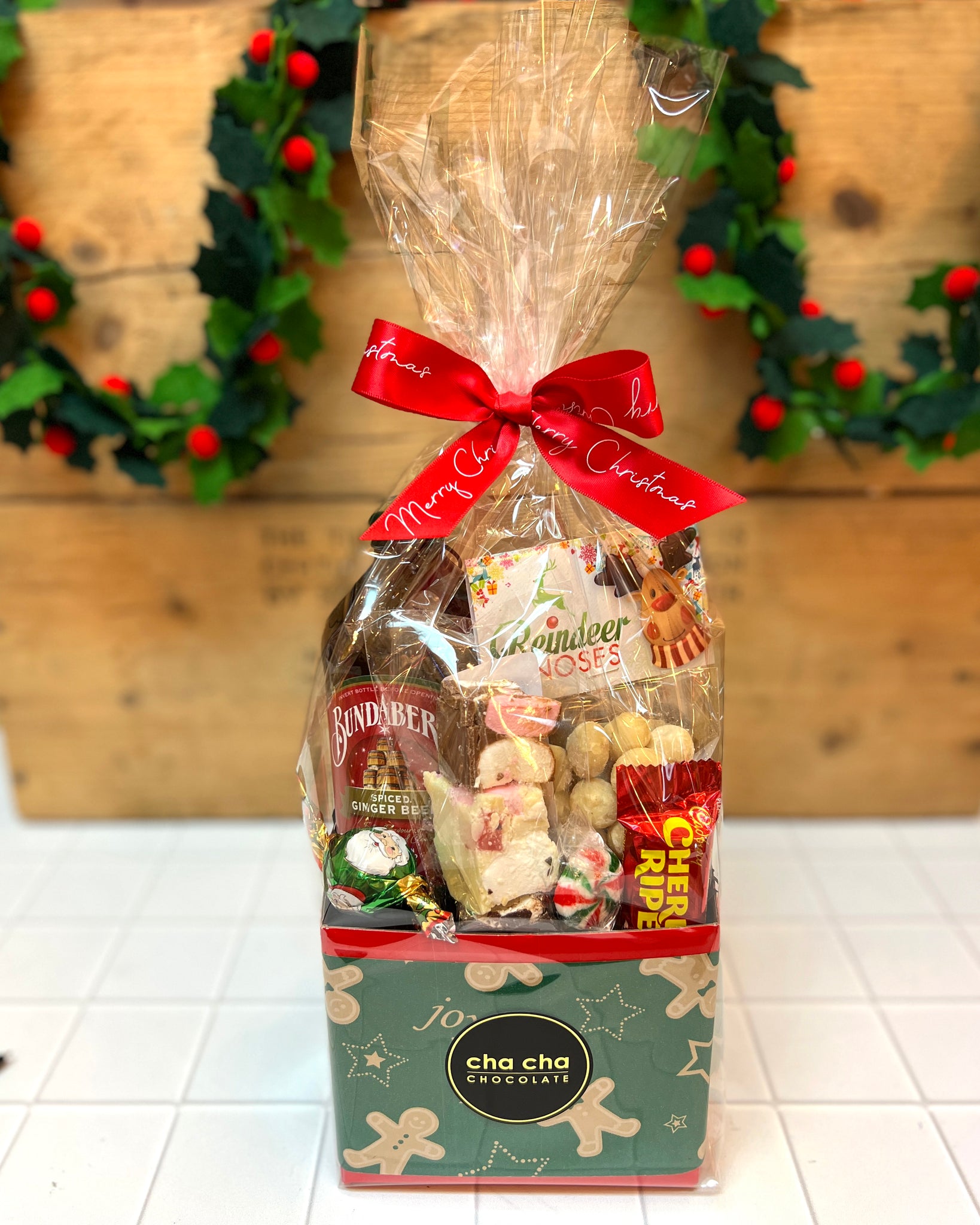 Cha Cha Chocolate products are made on shared equipment with dairy, soy, wheat, gluten, peanuts, tree nuts, and dried fruit. While we take care to avoid cross-contamination, traces may occasionally be present. Please check individual product labels for full ingredients, and feel free to contact us directly to discuss the contents of this hamper: 07 4152 4204.